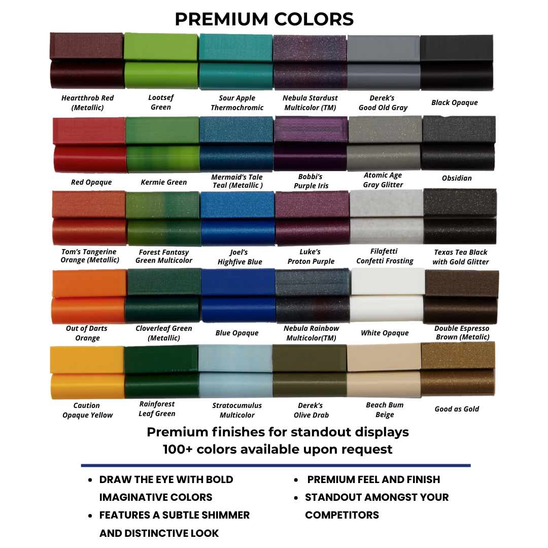 Smoother finishes, shimmer and multicolor effects, and access to 100+ specialty shades upon request.